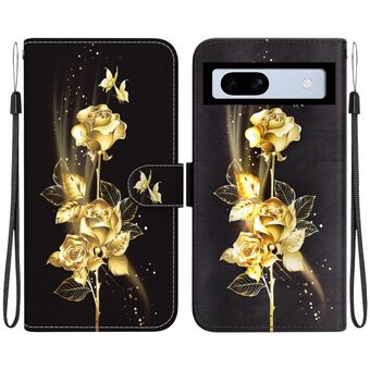 For Google Pixel 7a Crystal Texture Colored Drawing Leather Phone Case(Gold Butterfly Rose)