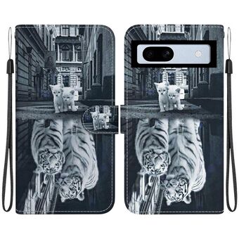 For Google Pixel 8 Crystal Texture Colored Drawing Leather Phone Case(Cat Tiger Reflection)