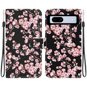 For Google Pixel 7a Crystal Texture Colored Drawing Leather Phone Case(Cherry Blossoms)
