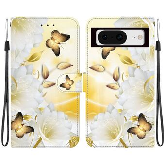 For Google Pixel 8 Crystal Texture Colored Drawing Leather Phone Case(Gold Butterfly Epiphyllum)