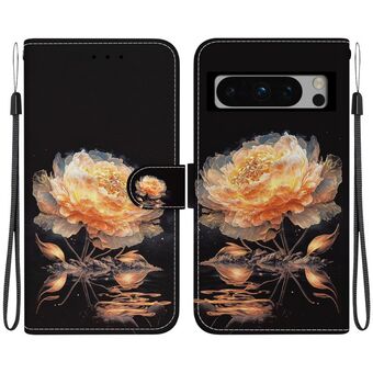 For Google Pixel 8 Pro Crystal Texture Colored Drawing Leather Phone Case(Gold Peony)
