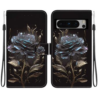 For Google Pixel 8 Pro Crystal Texture Colored Drawing Leather Phone Case(Black Rose)