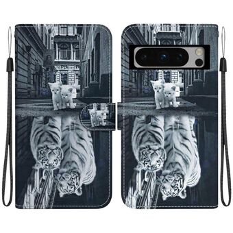 For Google Pixel 8 Pro Crystal Texture Colored Drawing Leather Phone Case(Cat Tiger Reflection)