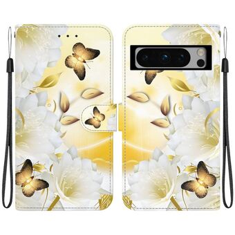For Google Pixel 8 Pro Crystal Texture Colored Drawing Leather Phone Case(Gold Butterfly Epiphyllum)