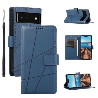For Google Pixel 6a PU Genuine Leather Texture Embossed Line Phone Case(Blue)