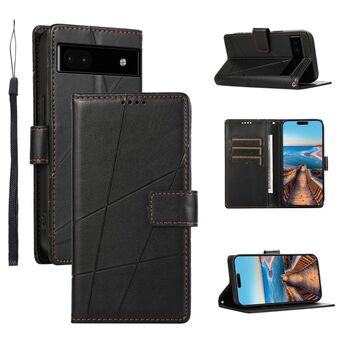 For Google Pixel 6a PU Genuine Leather Texture Embossed Line Phone Case(Black)