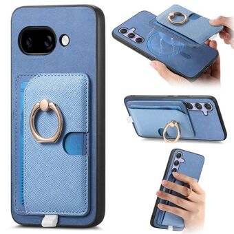 For Google Pixel 9a Retro Cross Leather Ring Side Insert Card Bag MagSafe Phone Case(Blue)