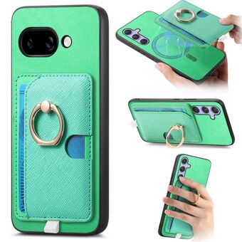 For Google Pixel 9a Retro Cross Leather Ring Side Insert Card Bag MagSafe Phone Case(Green)