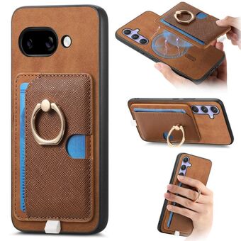 For Google Pixel 9a Retro Cross Leather Ring Side Insert Card Bag MagSafe Phone Case(Brown)