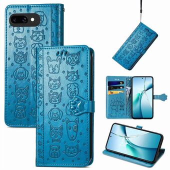 For Google Pixel 9a Cat and Dog Embossed Leather Phone Case(Blue)