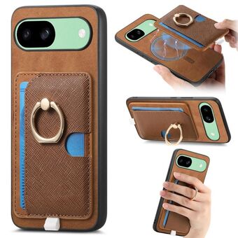 For Google Pixel 8a Retro Cross Leather Ring Side Insert Card Bag MagSafe Phone Case(Brown)