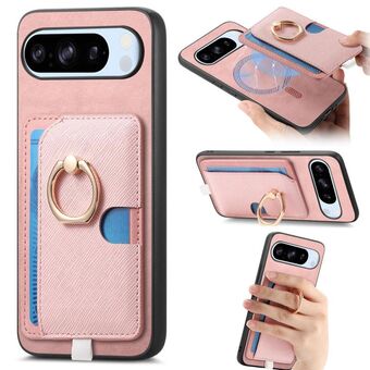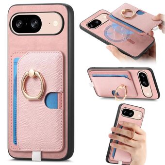 For Google Pixel 8 Retro Cross Leather Ring Side Insert Card Bag MagSafe Phone Case(Pink)