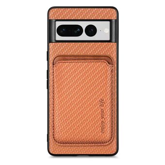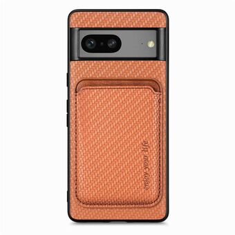 For Google Pixel 7 Carbon Fiber Leather Card Magsafe Phone Case(Brown)