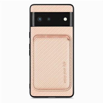 For Google Pixel 6 Carbon Fiber Leather Card Magsafe Phone Case(Khaki)