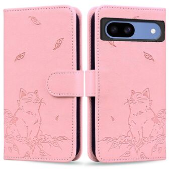 For Google Pixel 8a Cute Cat Embossed Leather Phone Case(Pink)