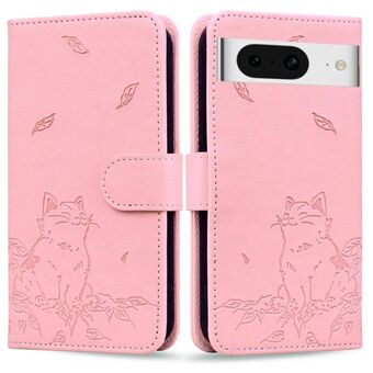 For Google Pixel 8 Cute Cat Embossed Leather Phone Case(Pink)