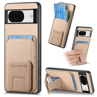 For Google Pixel 8 Carbon Fiber Card Bag Fold Stand Phone Case(Khaki)