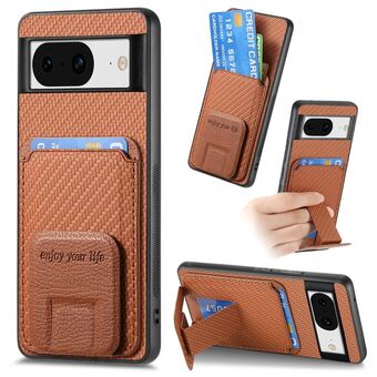 For Google Pixel 8 Carbon Fiber Card Bag Fold Stand Phone Case(Brown)
