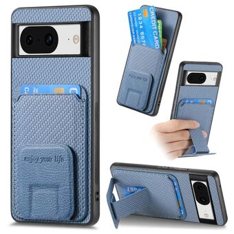 For Google Pixel 8 Carbon Fiber Card Bag Fold Stand Phone Case(Blue)
