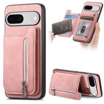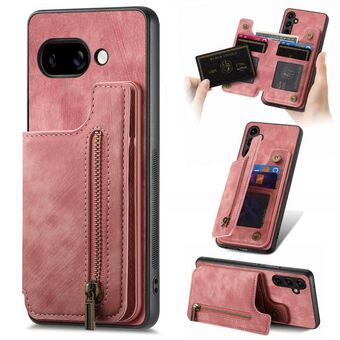 For Google Pixel 9a Retro Leather Zipper Wallet Back Phone Case(Pink)