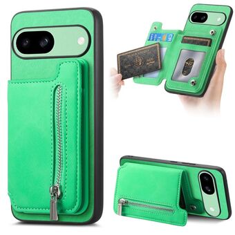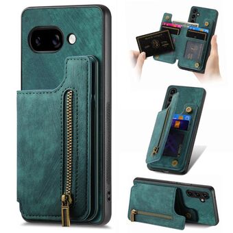 For Google Pixel 9a Retro Leather Zipper Wallet Back Phone Case(Green)