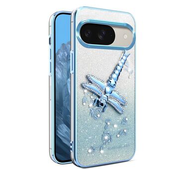 For Google Pixel 9 Gradient Glitter Immortal 3D Dragonfly Holder Plated Phone Case(Blue)