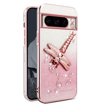 For Google Pixel 9 Gradient Glitter Immortal 3D Dragonfly Holder Plated Phone Case(Pink)