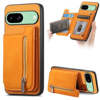 For Google Pixel 9a Retro Leather Zipper Wallet Back Phone Case(Brown)