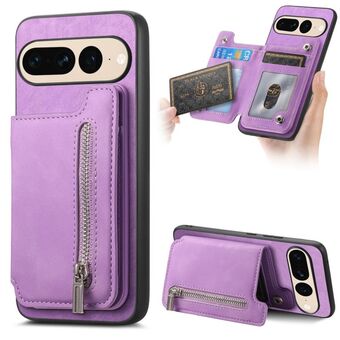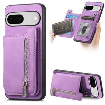 For Google Pixel 9a Retro Leather Zipper Wallet Back Phone Case(Purple)