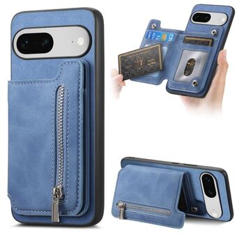 For Google Pixel 9a Retro Leather Zipper Wallet Back Phone Case(Blue)
