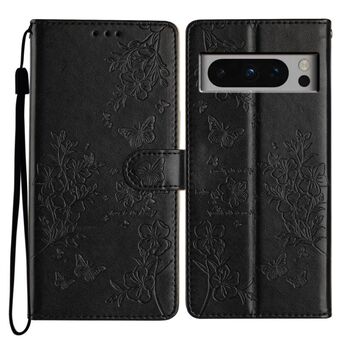 For Google Pixel 8 Pro Butterflies and Flowers Leather Phone Case(Black)