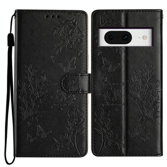 For Google Pixel 8 Butterflies and Flowers Leather Phone Case(Black)