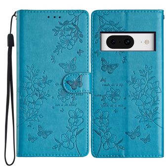 For Google Pixel 8 Butterflies and Flowers Leather Phone Case(Blue)