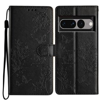 For Google Pixel 9 Pro XL Butterflies and Flowers Leather Phone Case(Black)
