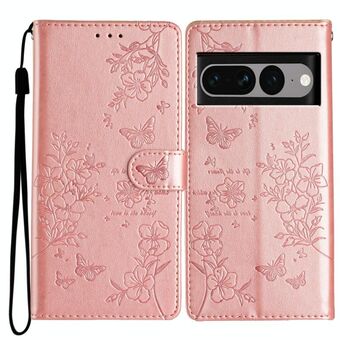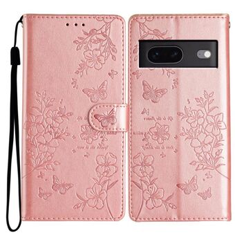 For Google Pixel 7a Butterflies and Flowers Leather Phone Case(Rose Gold)