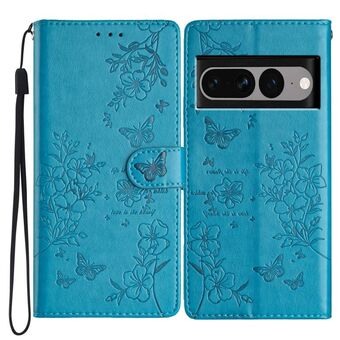 For Google Pixel 7 Pro 5G Butterflies and Flowers Leather Phone Case(Blue)