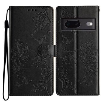 For Google Pixel 7a Butterflies and Flowers Leather Phone Case(Black)