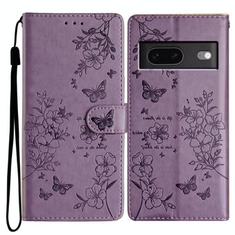 For Google Pixel 7a Butterflies and Flowers Leather Phone Case(Purple)