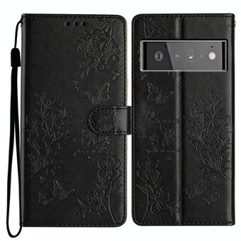 For Google Pixel 6 Butterflies and Flowers Leather Phone Case(Black)