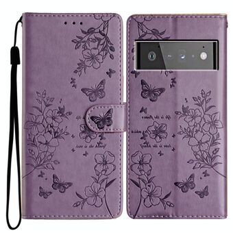 For Google Pixel 6 Butterflies and Flowers Leather Phone Case(Purple)