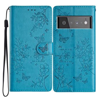 For Google Pixel 6 Butterflies and Flowers Leather Phone Case(Blue)