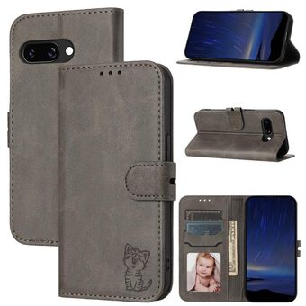 For Google Pixel 9a Embossed Happy Cat Pattern Flip Leather Phone Case(Grey)