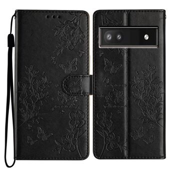 For Google Pixel 6a Butterflies and Flowers Leather Phone Case(Black)