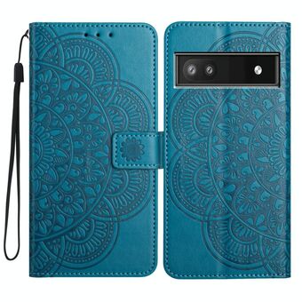For Google Pixel 9a Flower Embossed Leather Phone Case(Blue)