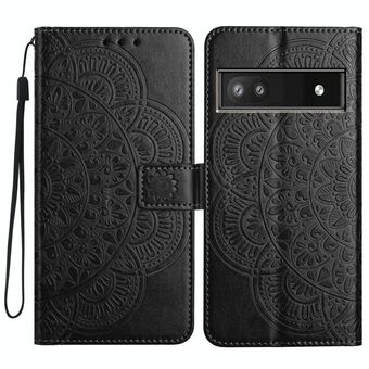 For Google Pixel 9a Flower Embossed Leather Phone Case(Black)
