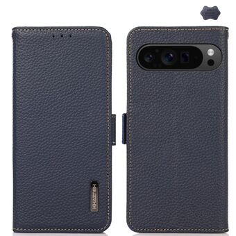 For Google Pixel 9a KHAZNEH Dual-color Cowhide Texture Flip Leather Phone Case(Blue)