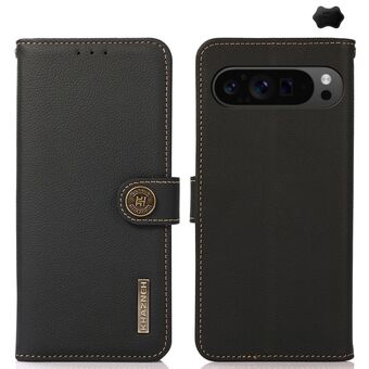 For Google Pixel 9a KHAZNEH Dual-color Cowhide Texture Flip Leather Phone Case(Black)