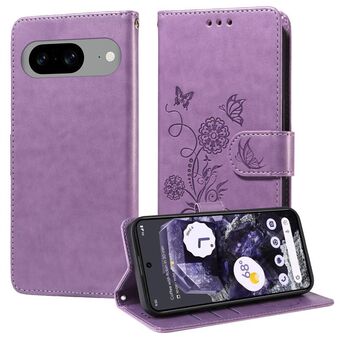 For Google Pixel 9 / 9 Pro Embossed Butterfly Flowers Leather Phone Case(Purple)