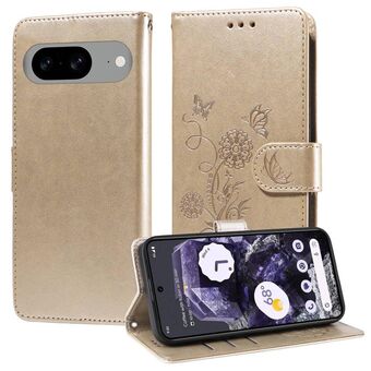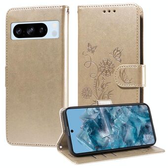 For Google Pixel 8 Butterflies and Flowers Leather Phone Case(Gold)