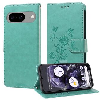 For Google Pixel 9 / 9 Pro Embossed Butterfly Flowers Leather Phone Case(Green)